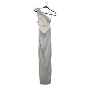 Aidan Mattox Silver Metallic One Shoulder Dress Formal Ruched Maxi Slimming Prom