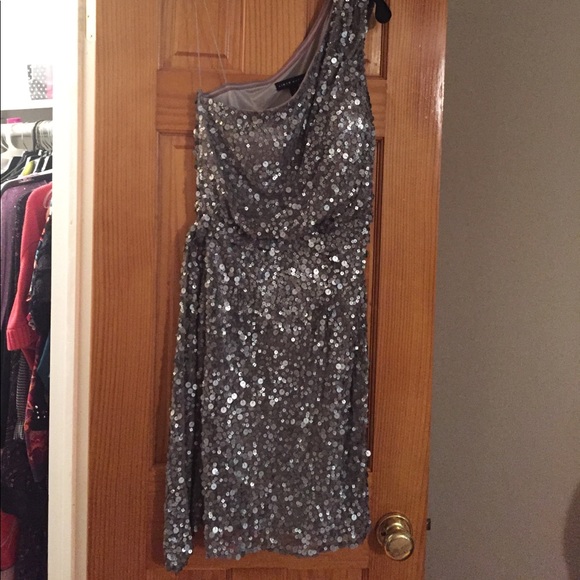 Aidan Mattox Silver Sequence one Shoulder Dress