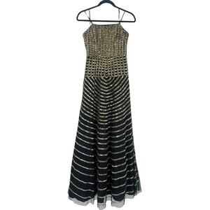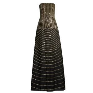 Aidan Mattox Strapless Sequin Gown Maxi Dress Gold Black Size 2