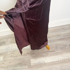 A corset bodice perfectly accentuates the draped styling of this satin gown, finished with a high side slit.