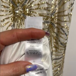 Dazzling dress with gold sequin starburst design. Perfect for special occasions.