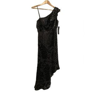 Aidan Mattox Velvet Burnout Metallic One Shoulder Asymmetric Ruffle Dress Size 6
