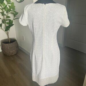 Aidan Mattox White Sequin Fringe Cocktail Dress Gatsby Glam Party Size 8