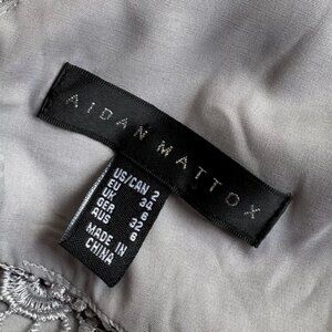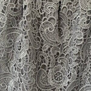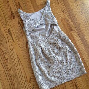 Aidan Mattox beautiful silver lace dress with gray lining. Hidden back zip and stunning open back detail. Purchased at Neiman Marcus and only worn once for a wedding.