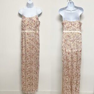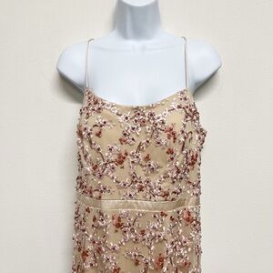 Aidan Mattox Womens Blush Pink Floral Embroidered Beaded Long Gown Size 10