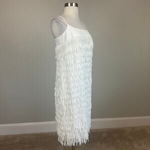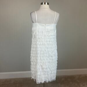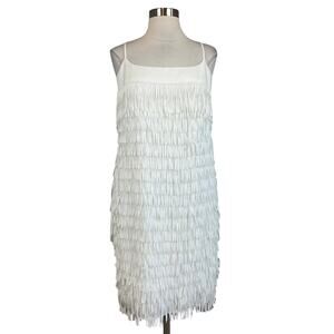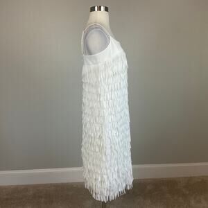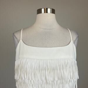 Aidan Mattox Women's Cocktail Dress Size 4 White Fringed Sleeveless Sheath