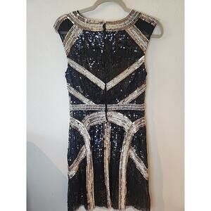 Aidan Mattox Women's Cocktail Dress Size 6 Black Silver Sequined Mini Sheath
