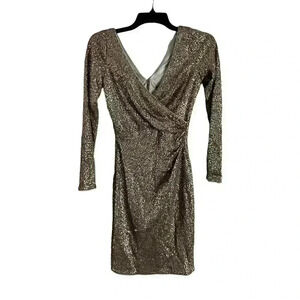 Aidan Mattox Women’s Dress Cocktail Sequin Gold Long Sleeve Size 0