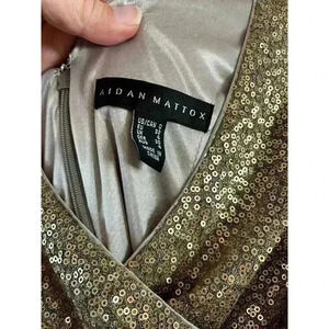 Gorgeous and flattering Aidan Mattox cocktail dress. Perfect condition. Gold sequin, long sleeve, lined. Size 0