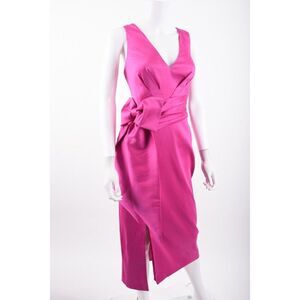Aidan Mattox Womens Midi Dress Shutter Pleat Satin Bow Party Sz 8 Pink Flame NWT