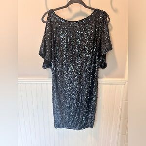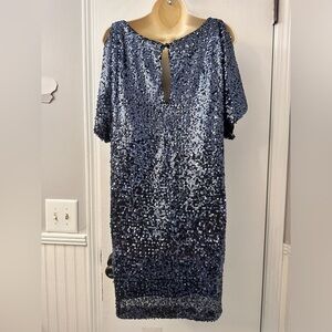 Aidan Mattox Womens Sequin Shift Dress with Keyhole Back cold shoulder sleeves 6