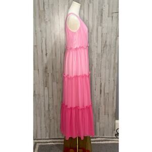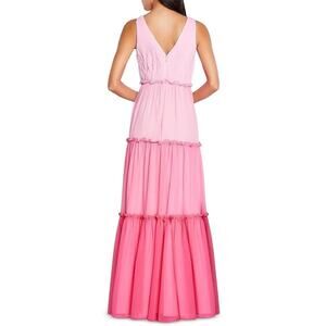 Aidan Mattox Women's Size 6 Pink Color Block Tiered Maxi Dress