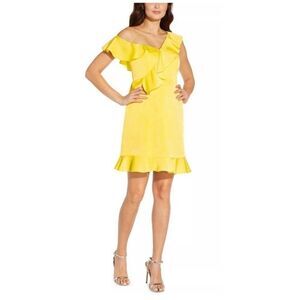 Aidan Mattox Yellow Satin Ruffle Off Shoulder Mini Cocktail Dress Size 0
