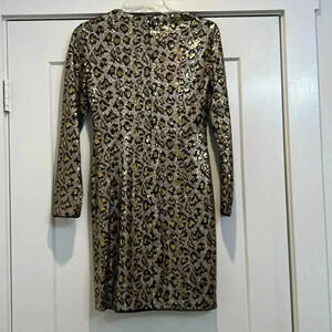 Aidan Mattox sequin leopard print dress size 0. In perfect condition! This dress is so beautiful and would make the perfect dress for a Christmas or New Year’s Eve party! It’s absolutely stunning! It’s fully lined with a back zipper closure. A beautiful dress! Measurements laying flat: Shoulder to bottom of dress: 33.5 inches Across chest long Sleeves: 22 inches Chest across: 14 inches Hips across: 15.5 inches