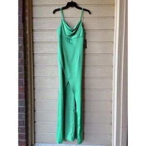 New with Tags $220, Aidan Aidan Mattox women's Flora Green Satin Cowl Neck Long Column Gown Maxi Dress, size 2, fully lined, sleeveless with adjustable strappy shoulder straps, hidden back zipper with hook & eye closure, deep 28 inch vent slit at mid-front hemline.