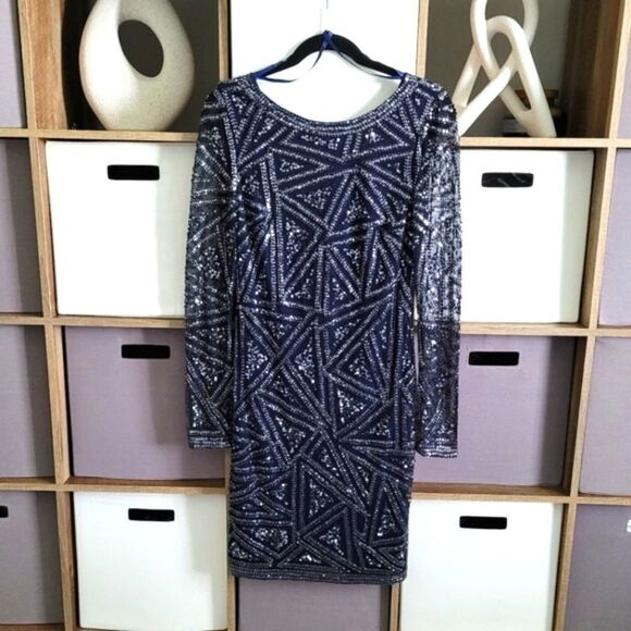 Aidan Mattox Elegant Formal Navy Sequin Dress Size 6