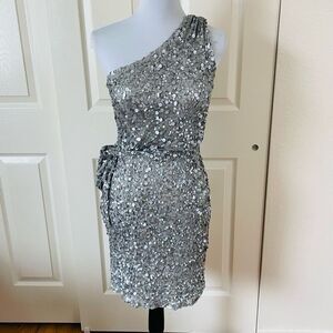 Aidan Mattox One Shoulder Sequin Dress Silver Size 0