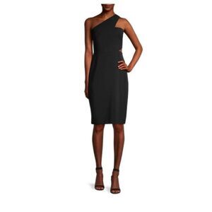 Aidan Mattox Womans midi crepe Dress Size US 14 Black One Shoulder