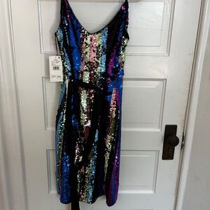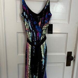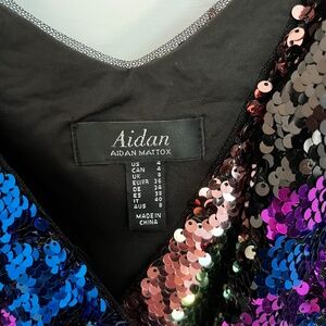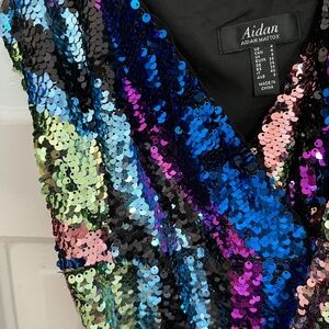 Sequin colors include black, purple, blue. Pink, green in jewel tones. Very gorgeous in person. No sequins missing.