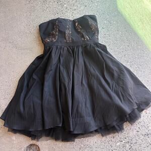 : Speechless strapless dress, black lace party dress, tulle cocktail dress, fit and flare strapless dress, prom homecoming dress, strapless skater dress, little black dress with lace, formal party dress, vintage Y2K partywear, youthful strapless gown