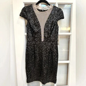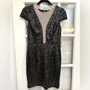 Aidan by Aidan Mattox Cap Sleeve Sequin Plunging Cocktail Dress Size 6 NWT