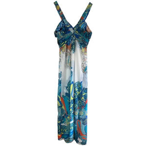 Aidan by Aidan Mattox Empire Waist Chiffon V-Neck Blue Multi Dress Size 6 NWT