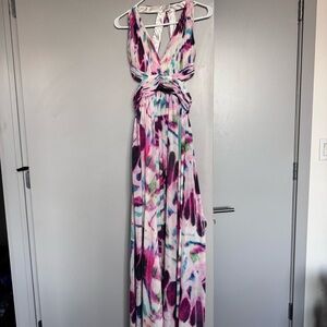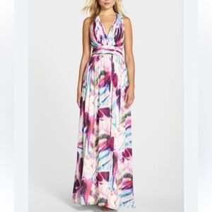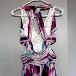 Aidan by Aidan Mattox Halter Print Chiffon Open Back Gown Multicolor US 4