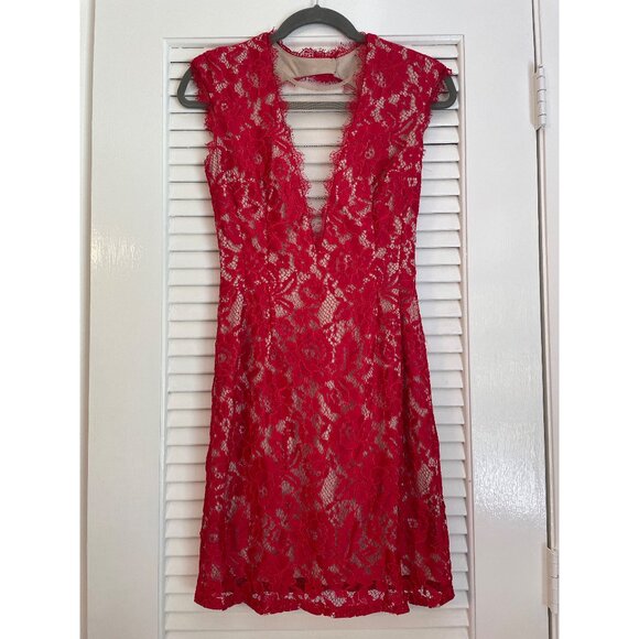 Aidan by Aidan Mattox Illusions Lace Cutout Mini Dress in Red US Size 2