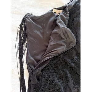 Aidan by Aidan Mattox | One Shoulder Flapper Style Black Dress with Fringe | 4