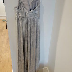 Aidan by Aidan Mattox One-Shoulder Silver Metallic Pleated Gown.