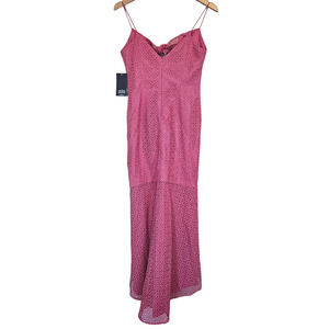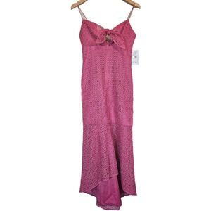 Aidan by Aidan Mattox Pink Eyelet Lace Sleeveless Midi Dress Tie Front Womens 2