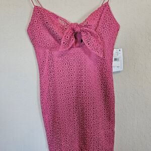 Aidan by Aidan Mattox Pink Eyelet Lace Sleeveless Midi Dress with Tie Front