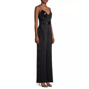 Aidan by Aidan Mattox Sequin-Embellished Wrap Jumpsuit Size 4 Black NWOT