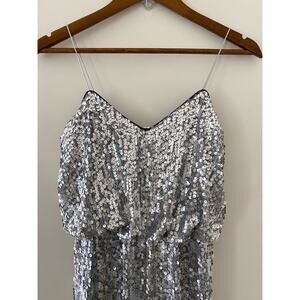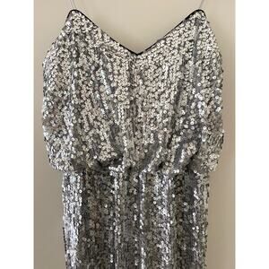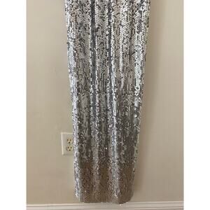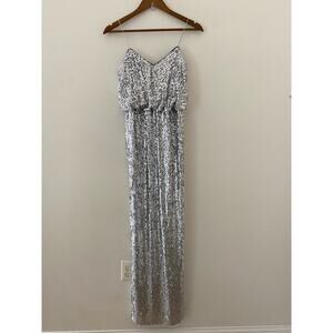 Aidan by Aidan Mattox Silver Sequin Dress Maxi Formal Gown EUC 0 V Neck