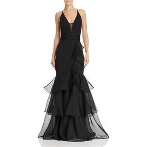 Aidan by Aidan Mattox Sleeveless Halter Ruffle Cocktail Gown Black Womens Size 6