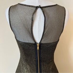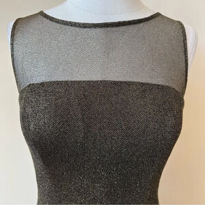 Beautiful fit and flare dress with mesh at the chest and metallic fabric throughout. Excellent used condition