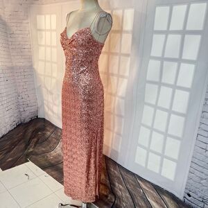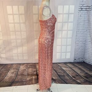 Aidan by Aidan Mattox Champagne Pink Sequin Side-Slit Lined Maxi Gown Size 4