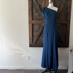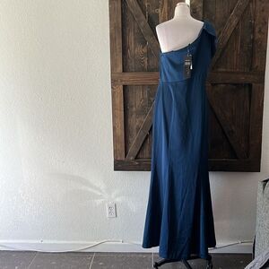 NWT, A single petal-shaped sleeve graces the shoulder of this elegant mermaid gown that's sure to stun wherever you go.