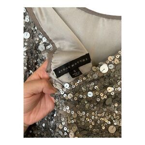 Aiden Maddox Short Sequin Dress Long Sleeves Boat Neck V Back NWT Sz 8