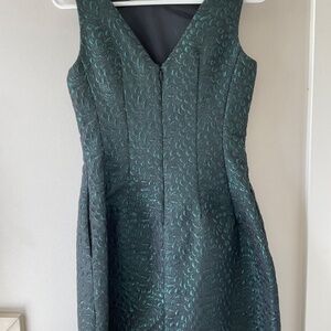 Dark green with a slight shimmer, fit and flare dress above knee length by Aiden for Aiden Maddox. EUC
