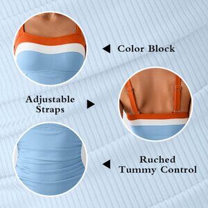 High Quality Ribbed Fabric: With classic shape, colorblock and moderate bottom coverage, this retro one piece is cut from stretchy textured material, making it soft and comfortable to wear