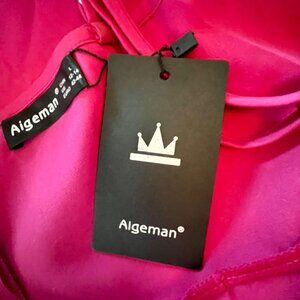 This Aigeman Spaghetti Strap Dress is a blend of 95% Polyester and 5% Spandex, ensuring it is soft, comfortable, and lightweight. Features a deep v-neckline, a front cross slit, and a convenient zipper closure. It is for size 12-14.