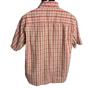 Aigle Button Up Short Sleeve Shirt L Pink Plaid Chest Pocket Collared Cotton