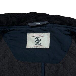 Aigle Maitre Cauoutchoutier Quilted Collared Button Front Navy Blue Jacket
