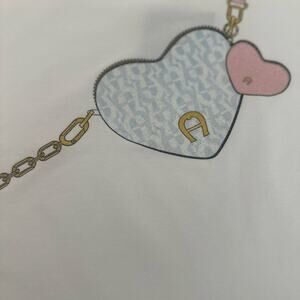 Fun and feminine, this white short-sleeved T-shirt for teen girls is by AIGNER. It is printed with a pink and pale blue sparkly heart-shaped bag design on the front, featuring the signature 'A' horseshoe logo for an added designer touch. Comfortable to wear, this crew neck top is made from soft cotton jersey.