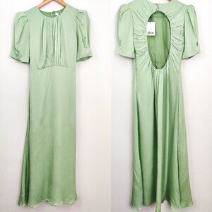 Aiifos Short Sleeve Keyhole Back Maxi Dress in Green Medium