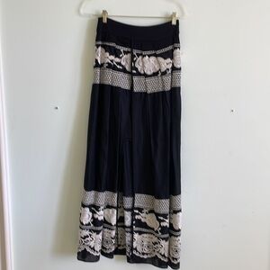 Aijek Andrea Embroidered Maxi Skirt in Black & White Size Medium