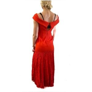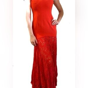 Aijek Red GODIVA SWEETHEART Off the shoulder LACE MAXI DRESS sz 2