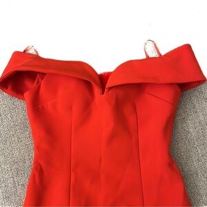 Aijek red GODIVA SWEETHEART LACE off the shoulder MAXI DRESS. OFF SHOULDER MAXI DRESS. SWEETHEART NECKLINE. FITTED WAIST WITH FLARE LACE MAXI SKIRT. PARTIALLY LINED. CONCEALED ZIP CLOSURE AT BACK.