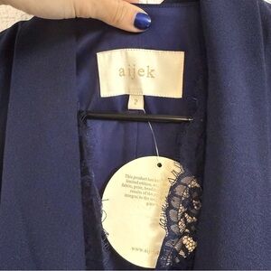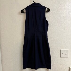 Navy v neck dress with lace detail in the bust, brand new with tags